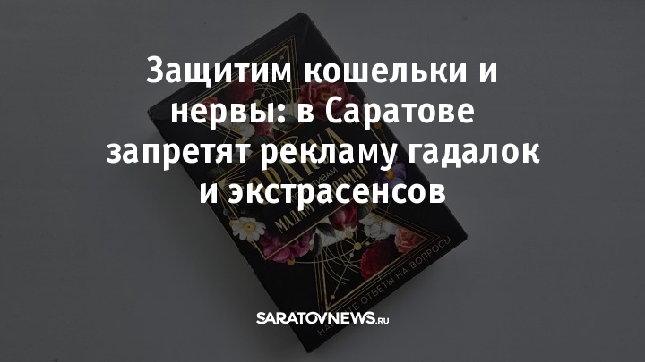 В Саратове готовятся к запрету рекламы услуг всевозможных эзотериков — гадалок, тарологов и экстрасенсов. Такое решение принято в рамках системной работы по наведению порядка в разных сферах жизни, которая уже затронула и другие напрвления.