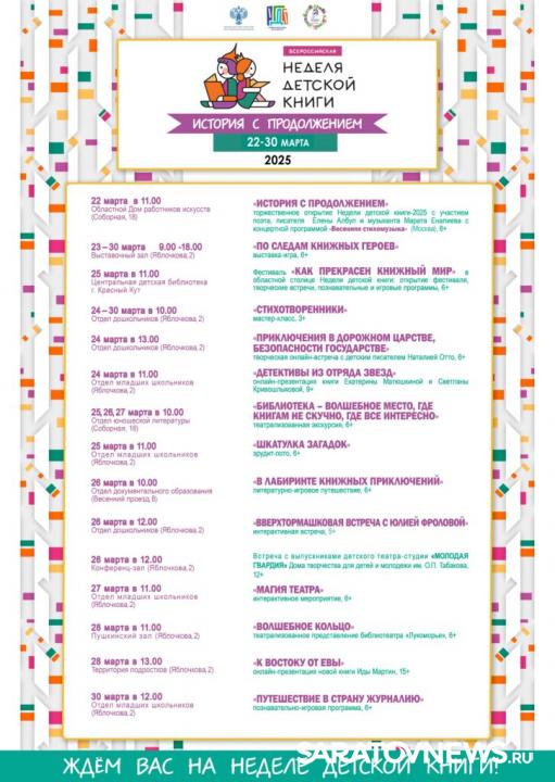 В Саратове с 22 по 30 марта пройдет Неделя детской книги.