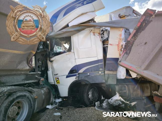 В Ершовском районе примерно два часа назад произошло ДТП. У Ершова столкнулись четыре грузовика.