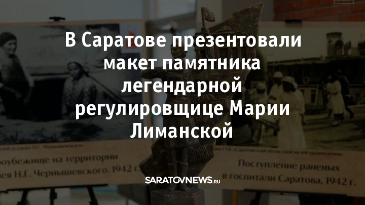 В Саратове представили макет памятника Марии Лиманской, знаменитой регулировщице и участнице Великой Отечественной войны, сообщили в министерстве информации и массовых коммуникаций области. Инициатива по созданию памятника принадлежит главе региона Роману Бусаргину.