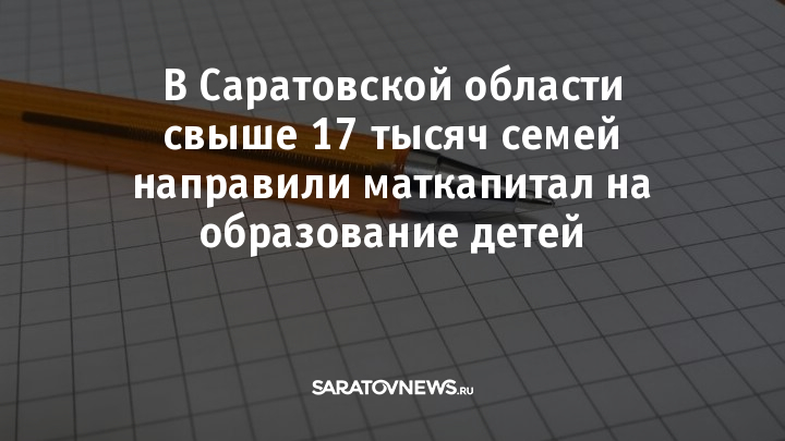Свыше 17 тысяч семей в Саратовской области направили маткапитал на образование детей. Сюда входит: оплата образовательных слуг; оплата услуг детского сада (в том числе частного); оплата проживания в общежитии в период обучения.