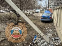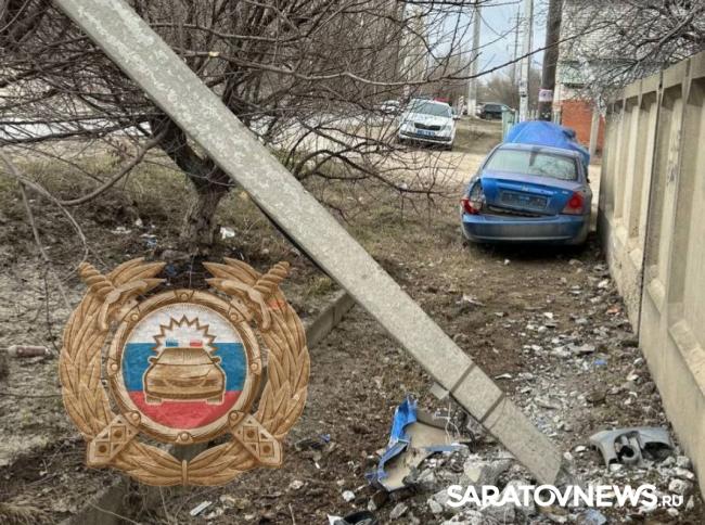 В Энгельсе примерно час назад произошло ДТП. Около дома №1 на улице Полиграфической автомобиль Hyundai Elantra съехал с дороги и врезался в опору ЛЭП рядом с забором.