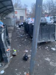 Жители рассказывают, что свалка вышла за пределы контейнерной площадки. Сами мусорные баки переполнены, рядом валяются пожелтевшие новогодние ёлки, остатки мебели, мусорные пакеты. Собаки разрывают их, разнося хлам еще дальше.