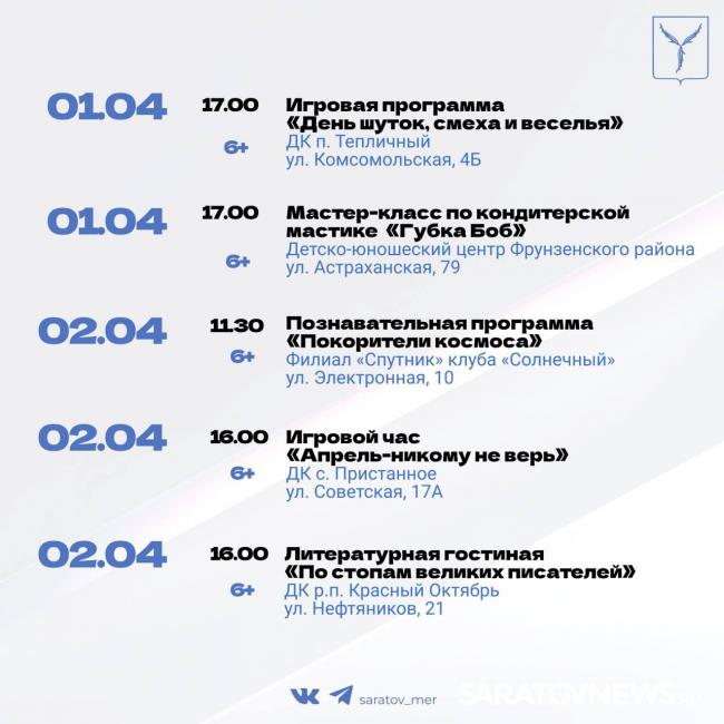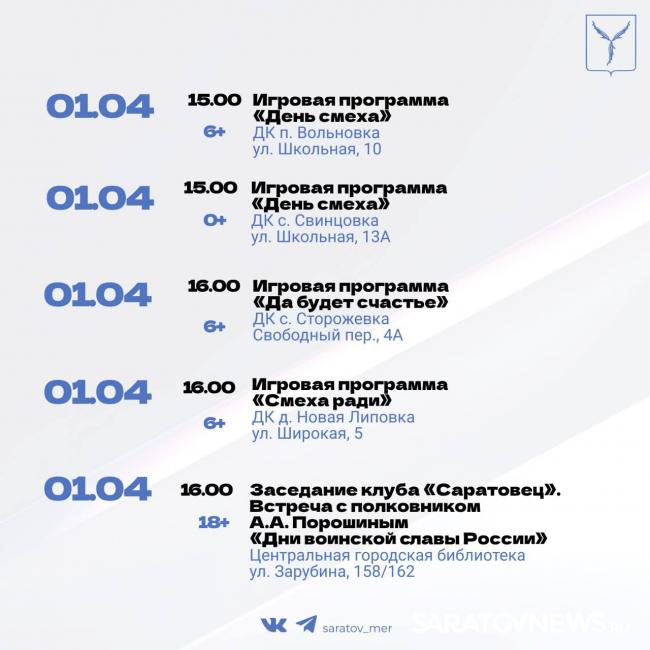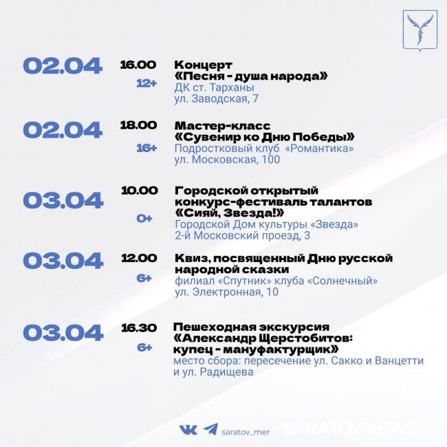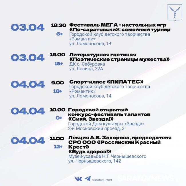 Саратовцев приглашаем на мероприятия, организованные учреждениями культуры города.