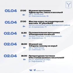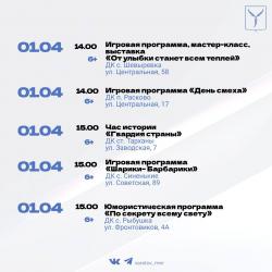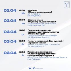 В течение недели пройдут концерты, творческие вечера, познавательные, юмористические программы во всех районах города. Вход бесплатный.