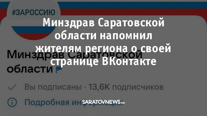 Официальная страница министерства здравоохранения Саратовской области во ВКонтакте.