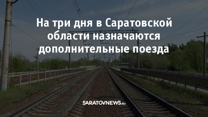 В Саратовской области на 29 апреля, 1 и 8 мая назначаются дополнительные поезда. Об этом сообщается на сайте Саратовской пригородной пассажирской компании.