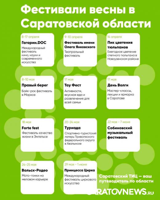 В Саратовской области пройдут фестивали весны, сообщает министерство информации и массовых коммуникаций области.
