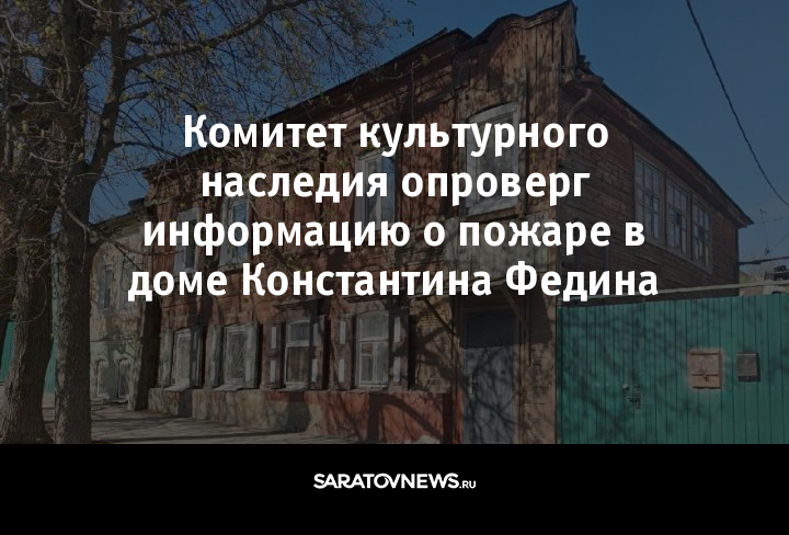 Комитет культурного наследия Саратовской области провёл проверку после сообщений о пожаре в Смурском переулке, 13. Изначально СМИ сообщили, что огонь охватил здание, являющееся объектом культурного наследия, где жил писатель Константин Федин. Однако сотрудники комитета выяснили, что пожар затронул только дворовые постройки, а само здание, имеющее статус объекта культурного наследия регионального значения, не пострадало от огня.