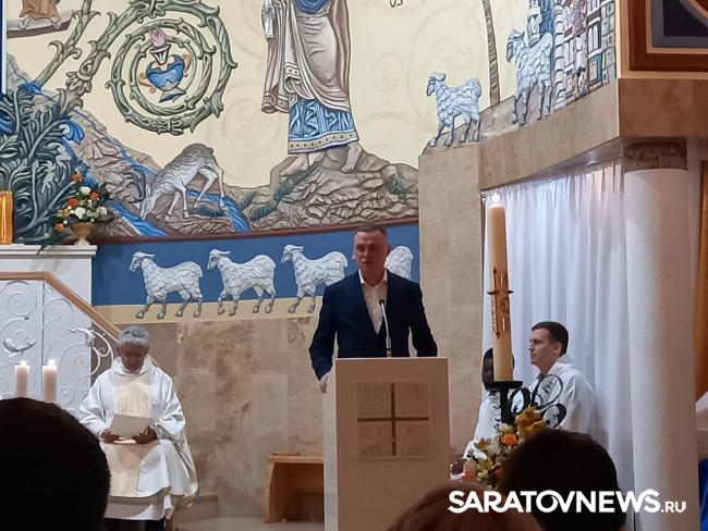 На торжественной литургии присутствовал замминистра внутренней политики и общественных отношений Саратовской области Тимофей Лещенко, который отметил большой вклад епископа Клеменса Пиккеля в развитии межнациональных отношений и традиционных ценностей. Тимофей Иванович зачитал собравшимся поздравление со светлым Христовым воскресением – Пасхой от губернатора Романа Бусаргина. Отец Диогенес зачитал поздравление от Главы Саратова Михаила Исаева.