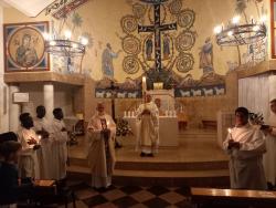 Во время третьей части святой мессы, Литургии Крещения, владыка Клеменс освятил воду, которой окропил верующих.