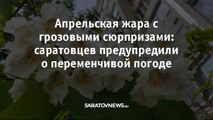 Саратовскую область на предстоящей рабочей неделе ждёт аномально тёплая для апреля погода, однако солнечные дни будут чередоваться с дождями и грозами. По данным регионального гидрометцентра, температурный режим соответствует климатической норме второй половины мая.