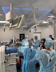 Эндоскопическую операцию пациенту со злокачественным новообразованием желудка провели главный врач центра, д.м.н. Борис Мейлах, заведующий отделением торакальной и абдоминальной онкологии Вадим Савинов и хирург-онколог Денис Денисов.