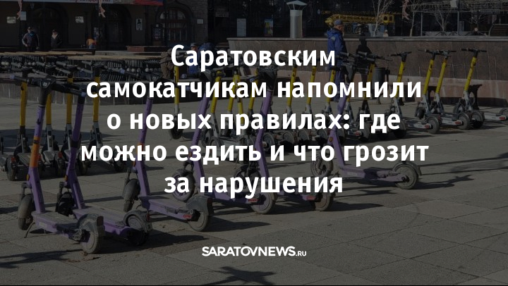 В 2024 году в Саратовской области зарегистрировали 42 ДТП с участием средств индивидуальной мобильности. В этих ДТП пострадали 42 человека, в том числе 16 детей. За езду на тяжёлом самокате (весом более 35 кг) по тротуарам придётся отдать 3000 рублей. Превышение скорости — 800 рублей (в будущем обещают повысить до 5000). Проезд по пешеходному переходу без спешивания — 1000 рублей.