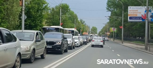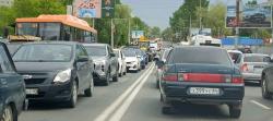 Пробка тянется до улицы Университетской. Движение по проспекту затруднено.