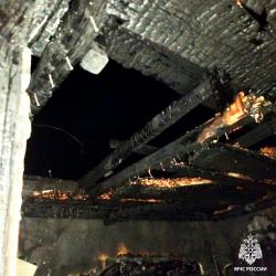 Пожарные нашли в зоне горения тело мужчины. По предварительной версии, причиной пожара стало нарушение правил эксплуатации печи. Огонь тушили два пожарных расчета на шести квадратах.