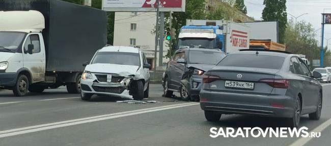 Участники аварии блокировали две полосы главной дороги. В результае в сторону Вольского тракта образовалась пробка, выезд из Саратова затруднен, сообщают очевидцы.