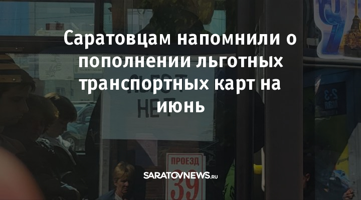 В Саратовской области завершается период пополнения льготных транспортных карт на май. Завтра, 15 мая, можно будет покупать поездки на июнь, заявило министерство труда и социальной защиты Саратовской области.
