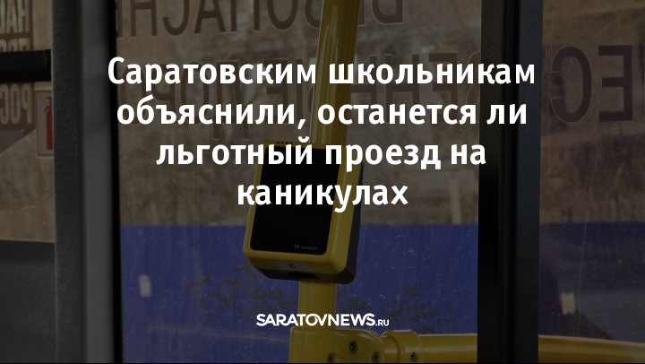 Саратовские школьники смогут пользоваться льготным проездом на общественном транспорте даже во время летних каникул. Действие транспортных карт не приостанавливается, если ребёнок продолжает обучение в школе. Для проезда в автобусах, троллейбусах и трамваях достаточно активированной карты, но водитель или кондуктор вправе запросить документ, подтверждающий право на льготу. Об этом рассказали в министерстве труда и соцзащиты Саратовской области, после многократных обращении родителей школьников.