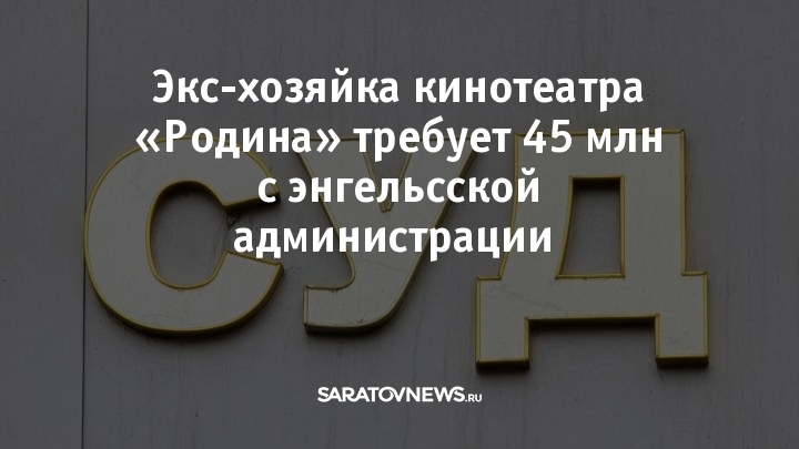 Бывшая владелица кинотеатра «Родина» в Энгельсе Ирина Уварова подала в Арбитражный суд Саратовской области иск к местной администрации на 44,8 млн рублей, обвиняя чиновников в «неосновательном обогащении». Однако судья Булат Бурганов оставил заявление без движения до 16 июня: предпринимательница не оплатила госпошлину в 673,7 тыс. рублей и не предоставила документы, подтверждающие её невозможность внести платёж. Соответствующая информация опубликована на сайте суда.