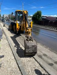 Также по маршруту проходит благоустройство. Откосы засыпают растительными слоями, там будет газон. Восстановливаются тротуарыв после перекладки коммуникаций и ставятся бордюры.