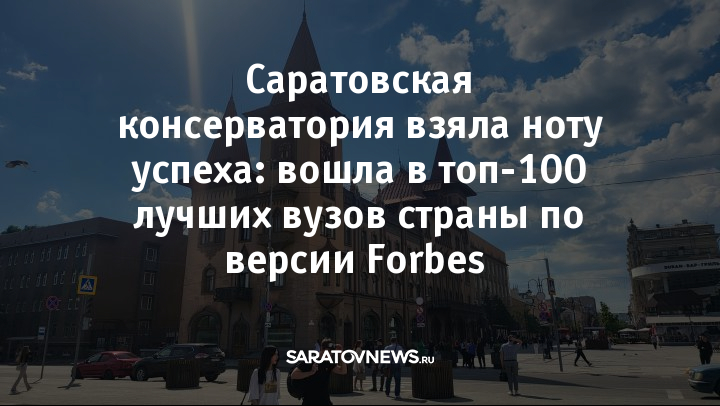 Саратовская государственная консерватория имени Собинова впервые покорила престижный рейтинг Forbes, заняв 95-ю строчку в списке лучших вузов России-2024. С оценкой 26,4 балла она обошла Ярославский госуниверситет, Ставропольский государственный медицинский университет идругих, и встала в один ряд с гигантами — МГУ им. Ломоносова, возглавившим рейтинг. Ни один другой вуз региона в топ-100 не попал.