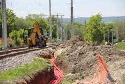 Наш корреспондент проинспектировал маршрут: на участке у 6-й Дачной рельсы местами не закреплены, стрелочные переводы не автоматизированы, а вместо современных компенсаторов — временные решения. «Обкаточный» трамвай стоит на стыке с маршрутом №3, где работы едва начаты.