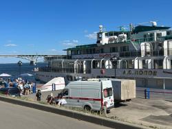Сегодня жители сообщили мне о другом вопиющем случае. В Саратов приплывает большое количество туристических теплоходов. Сегодня, одновременно с прибытием теплохода «А.С. Попов», на первый ярус набережной заехала грузовая «ГАЗель». И остановилась прямо на 4 причале, там, где туристы с вещами выходили из теплохода. Ситуацию усугубило то, что одному из пассажиров теплохода потребовалась помощь врачей скорой помощи. Скорая не могла подъехать к трапу. Водитель грузовой «ГАЗели» в это время не спеша занимался выгрузкой товара.