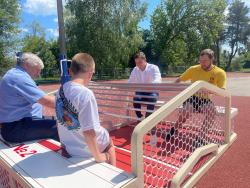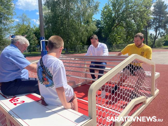 На стадионе в городском парке Петровска появилась необычная спортивная коробка - для игры в «ногомяч». Это новый вид активности, где участники играют в футбол сидя. Разработчики проекта представили его на московском форуме, а теперь привезли первую в Саратовской области площадку. Об этом сообщил глава Петровского района Максим Калядин.