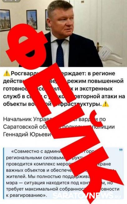 «Уважаемые саратовцы! В сети распространяется недостоверная информация от моего имени и от имени Росгвардии по Саратовской области», - сообщает в своем телеграм-канале градоначальник.