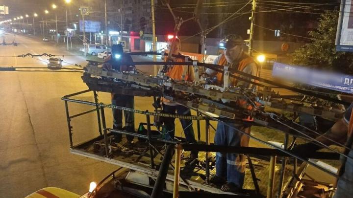 Сегодня ночью сотрудники МКУП «Энгельсгорэлектротранс» заменили один из сложнейших участков контактной сети на перекрестке проспектов Фридриха Энгельса и Строителей. Об этом сообщается на сайте районной администрации.