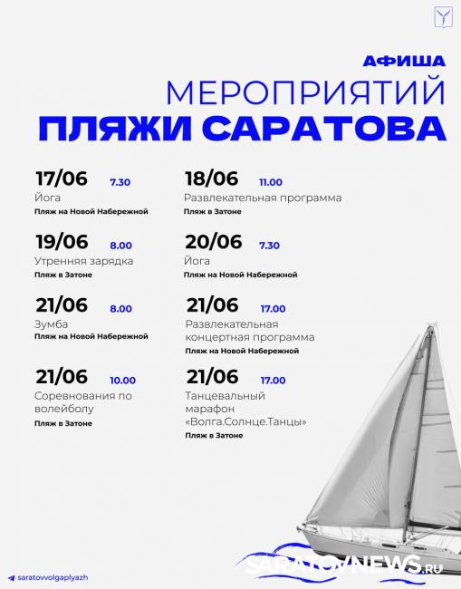 Для жителей и гостей Саратова подготовлена афиша мероприятий, которые пройдут на пляжах нашего города. Об этом сообщает телеграм-канал "Саратов. Волга. Пляж.".