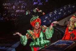 Проводником в волшебный мир легендарного шоу Гии Эрадзе «5 континентов» на протяжении всего спектакля стал искромётный, экспрессивный клоунский дуэт «Долли и Домино» заслуженных артистов России Александра и Лады Сарнацких.
