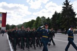 Затем прошла церемония прощания со Знаменем института. Офицерами из почетного караула были переданы полномочия младшим курсам.