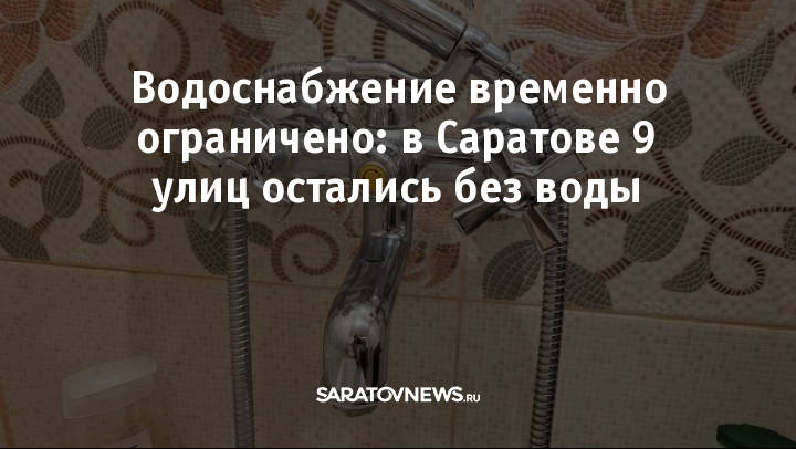 Сегодня, 30 июня, в Саратове МУПП "Саратовводоканал" проводит срочные аварийно-ремонтные работы на городском водопроводе, что потребует временного ограничения водоснабжения в нескольких районах города.