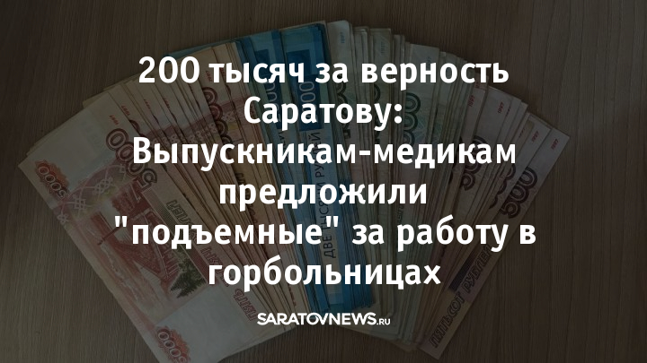Администрация Саратова выступила с новой инициативой для решения кадрового голода в городской медицине. Как объявил сегодня на заседании комитета гордумы по местному самоуправлению председатель комитета по труду и соцразвитию мэрии Максим Михайловский, выпускникам Саратовского государственного медицинского университета (СГМУ), отучившимся по целевому направлению, планируют выплачивать солидную разовую выплату в 200 тысяч рублей.