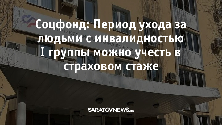 Период ухода за людьми с инвалидностью I группы или лицами старше 80 лет можно подтвердить и учесть в страховой стаж по заявлению, поданному в Отделение СФР по Саратовской области.