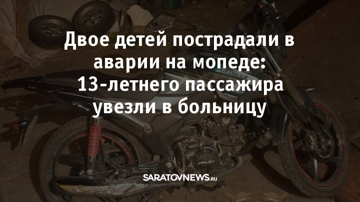 Инцидент случился около 20:05 на улице Школьной в селе Барки, напротив дома № 88. В результате падения с мопеда пострадал 13-летний пассажир. Мальчика с травмами госпитализировали.
