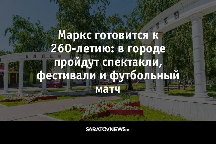 В Марксе началась активная подготовка к празднованию 260-летия города. Как сообщили в районной администрации, юбилей планируется отметить масштабно. К организации мероприятий подключились сотрудники Комитета культуры, спорта и молодежной политики, а также представители национально-культурной автономии немцев Марксовского района.