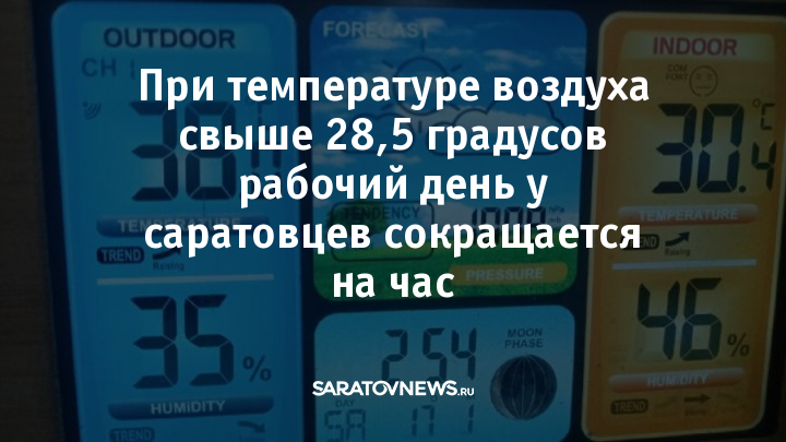 «В случае если температура в рабочем помещении приблизилась к отметке 28,5 градусов, рекомендуется сокращать продолжительность рабочего дня на 1 час. При повышении температуры до 29 градусов — на 2 часа, при температуре 30,5 градусов — на 4 часа», - отмечается в документе.