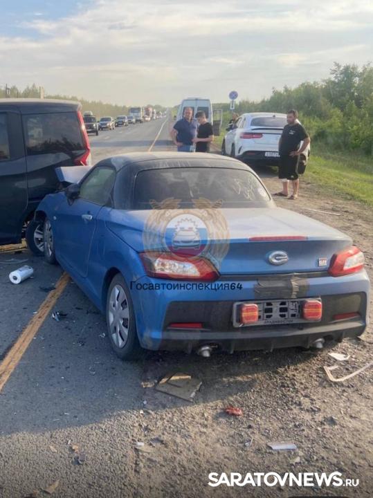 Авария случилась 11 июля около 17:20 на 328-м километре автодороги Сызрань–Саратов–Волгоград. Столкнулись Toyota, Subaru, Renault Sandero и Volkswagen.