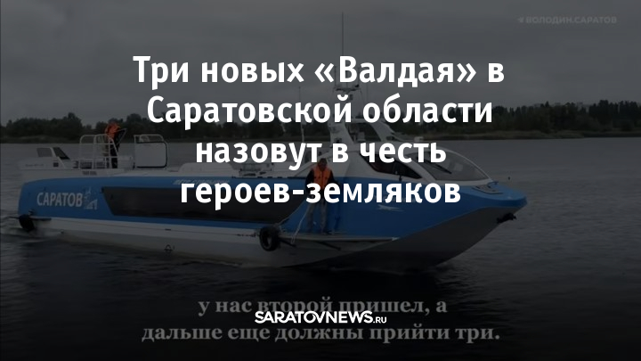 Во время рабочей поездки в Саратов председатель Госдумы Вячеслав Володин сообщил, что новые пассажирские теплоходы «Валдай» пополнят речной флот региона в 2025–2026 годах и будут носить имена Героев Советского Союза — уроженцев Саратовской области.