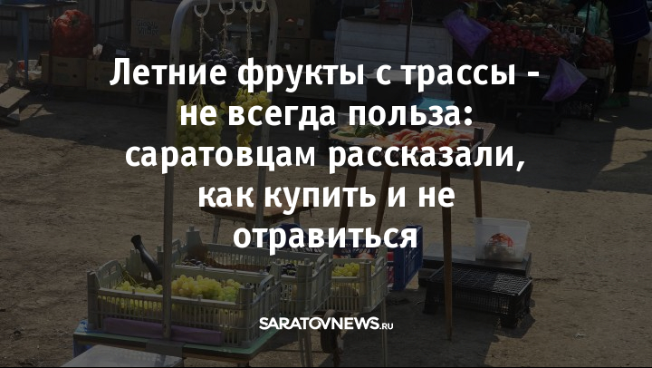 Министерство информации и массовых коммуникаций Саратовской области напомнило жителям о скрытых опасностях покупки фруктов и овощей с развалов у обочин. Летняя традиция останавливаться вдоль дороги за местной клубникой, арбузами или абрикосами может обернуться отравлением — предупреждают чиновники.