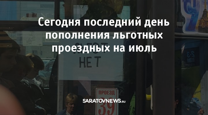 Министерство труда и соцзащиты Саратовской области напоминает жителям: 14 июля — последний день для пополнения льготных транспортных карт на текущий месяц.