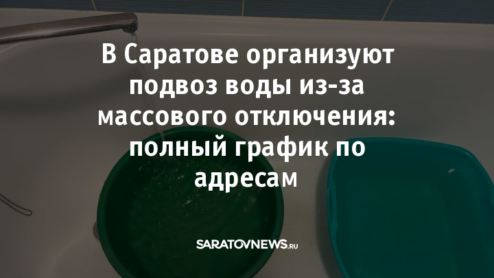 Администрация Волжского района Саратова сообщила, что во вторник, 15 июля, в связи с отключениями будет организован подвоз питьевой воды в ряд домов.