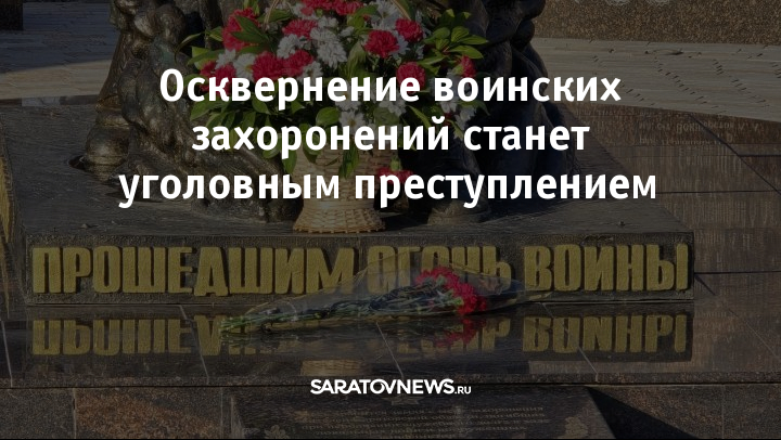Теперь за осквернение воинских захоронений и мемориалов, посвящённых павшим при защите страны, будет грозить уголовная ответственность — вплоть до 5 лет лишения свободы или штраф до 5 миллионов рублей. Закон распространяется не только на объекты в России, но и на памятные места за рубежом.