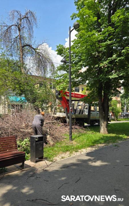 В Саратове на бульваре Рахова полностью спиливают деревья, которым требуется санитарная обработка. Об этом сообщают пользователи телеграм-канала «На улицах Саратова».
