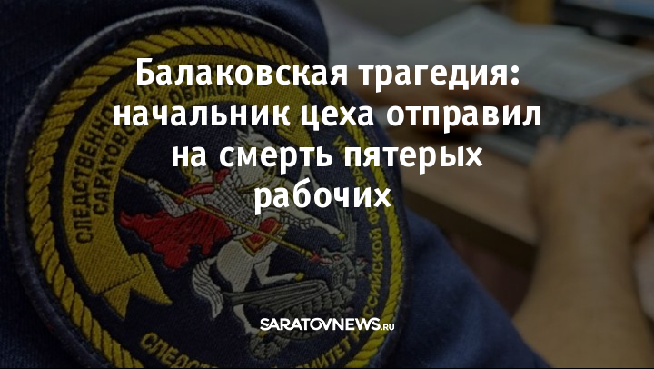 В Саратовской области завершено расследование уголовного дела о чудовищной халатности, приведшей к гибели пяти сотрудников "Балаково-Водоканала". 51-летний начальник цеха предстанет перед судом за нарушение правил безопасности, повлекшее массовую гибель людей. Об этос сообщили в региональном СУ СК РФ.