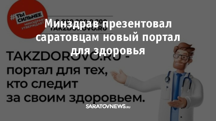 На портале «Так здорово!» саратовцы могут воспользоваться интерактивными сервисами, которые помогут вести здоровый образ жизни. Это специальный информационный ресурс, который разработан и действует под эгидой Минздрава России - (www.takzdorovo.ru/). Он предоставляет доступную и профессиональную информацию о возможностях для поддержания здорового образа жизни, оптимальных физических нагрузках и видах спорта для людей различного возраста.
