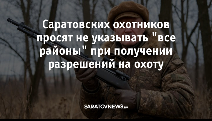 Комитет охотничьего хозяйства и рыболовства Саратовской области напомнил жителям региона о правилах оформления разрешений на летне-осенний сезон охоты. Объявление опубликовано в связи с тем, что при подаче заявлений некоторые охотники указывают территорию охоты как «все районы области».